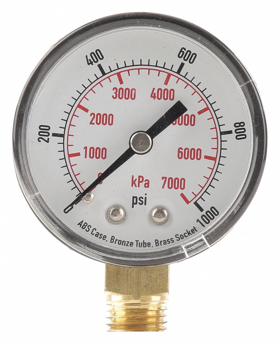 GRAINGER APPROVED Pressure Gauge, 0 to 1000 psi, 0 to 7000 kPa Range, 1